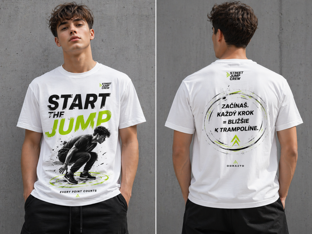 Tričko START THE JUMP reprezentuje prvý krok na tvojej ceste k trampolíne. Dynamický dizajn zachytáva moment tesne pred výskokom – sústredenie, energiu a rozhodnutie ísť ďalej.